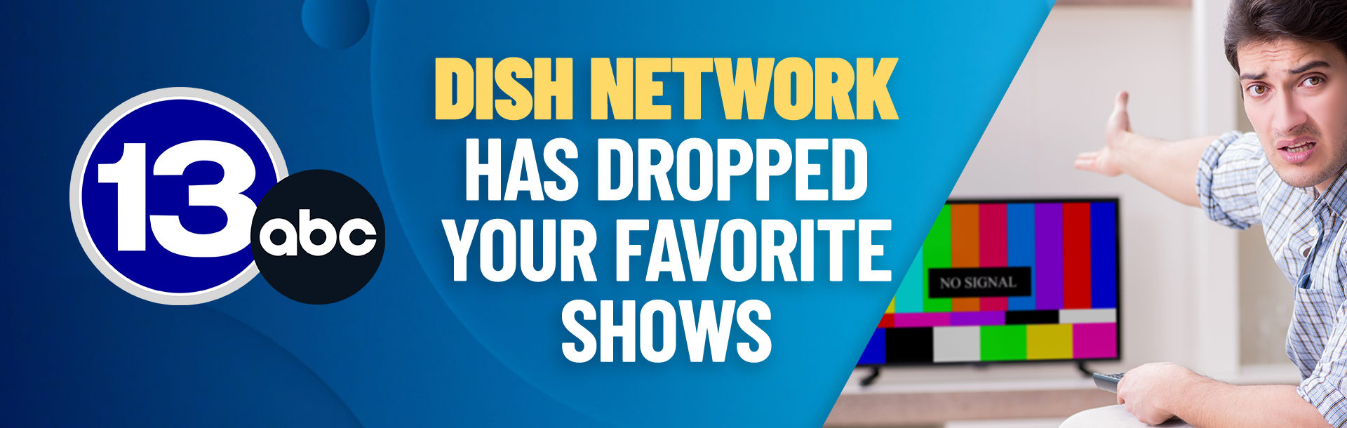 DISH has dropped 13abc, which means you've lostABC. DISH is denying you access to your favorite programming! Take action now to keep watching.