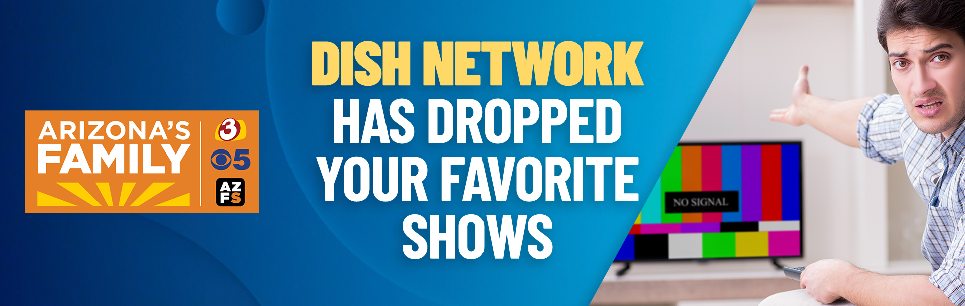 DISH has dropped azfamily, which means you've lostAZ Family Sports, CBS 5 and 3TV. DISH is denying you access to your favorite programming! Take action now to keep watching.