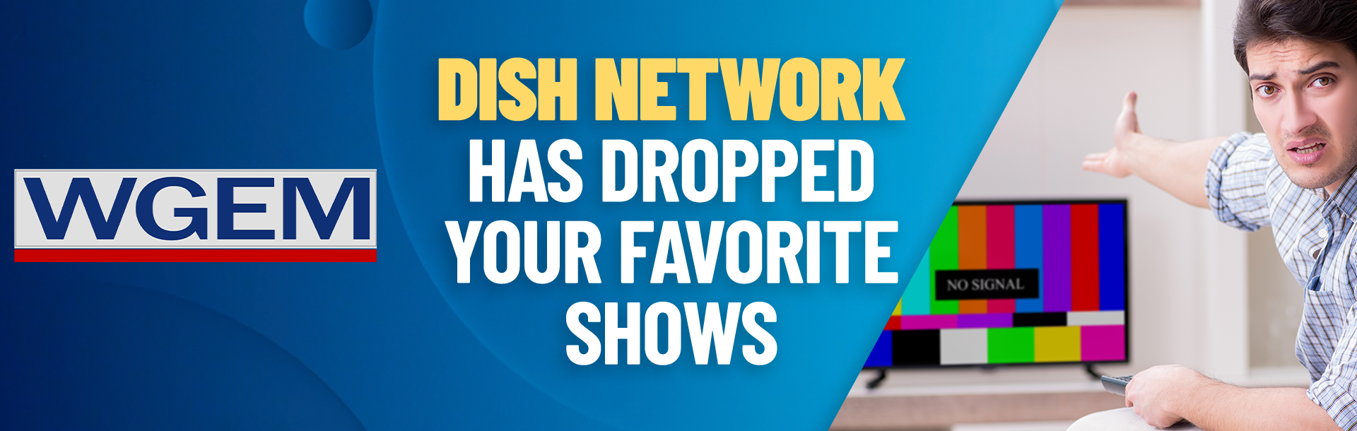 DISH has dropped WGEM, which means you've lostNBC, FOX and The CW Network. DISH is denying you access to your favorite programming! Take action now to keep watching.