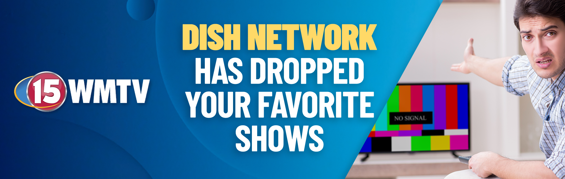 DISH has dropped WMTV 15 News, which means you've lostNBC and The CW Network. DISH is denying you access to your favorite programming! Take action now to keep watching.